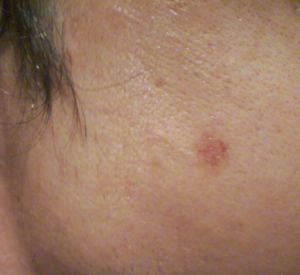 シミ画像7日目。昨日からクイノールは塗布していませんが、見た目は赤みがきつくなりまだ瘡蓋にはなっていません。右頬の下の方のシミだったのであまり人と話すときも気になりませんが、正面のシミなら気になってしまうでしょうね。。。