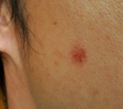 3日目のシミ画像です。見た目に変化は無く、痛みも痒みもありません。ただ触ってみるとザラザラ感が少し出てきました。